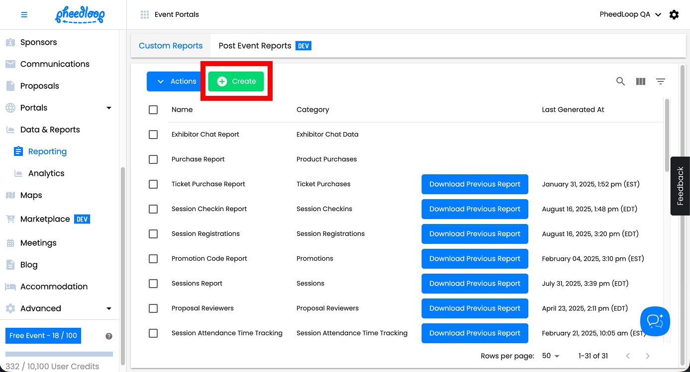 PheedLoop offers a robust reporting system that ensures you are able to access your event data at all times.