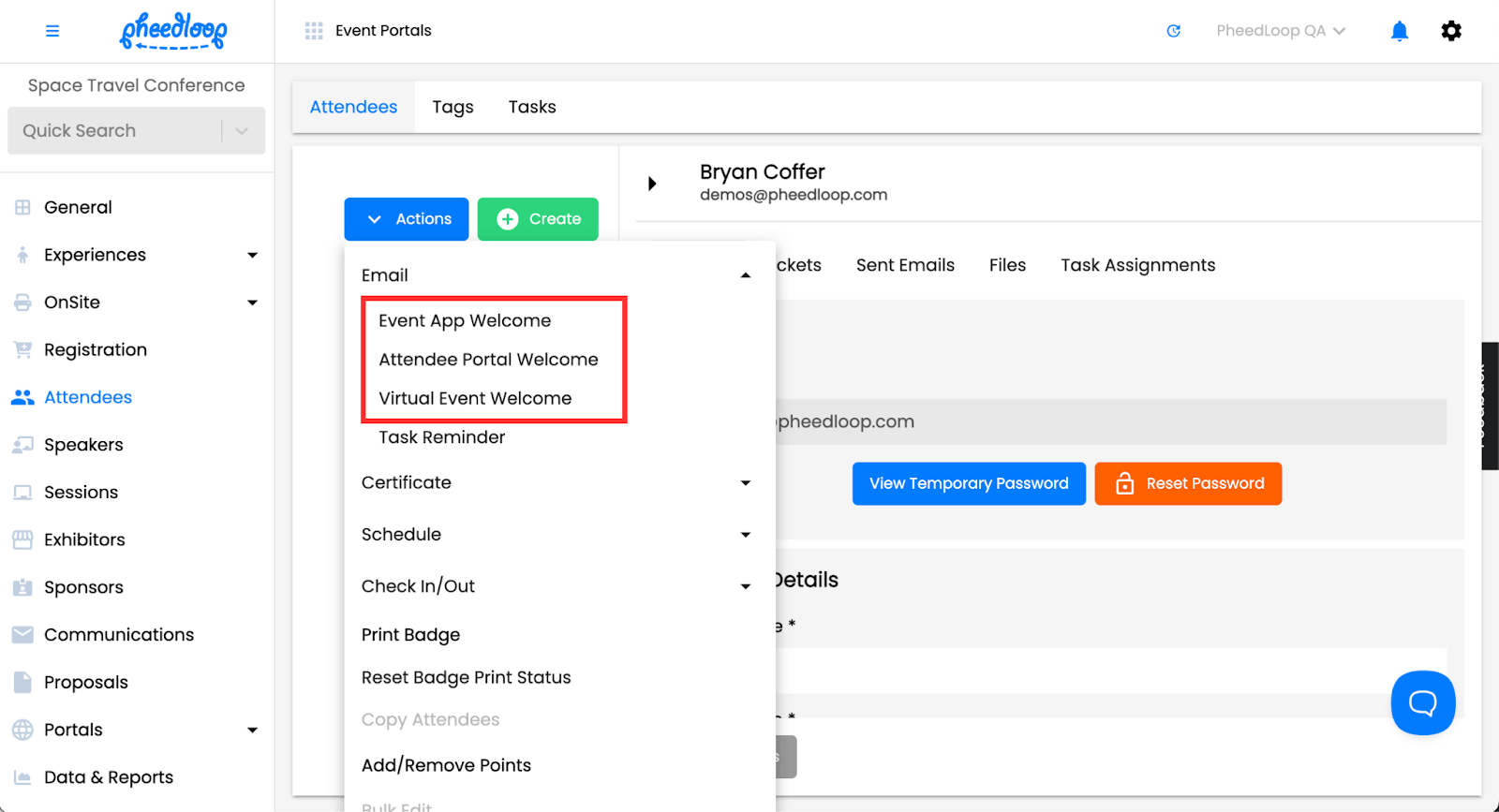 Quick tip - Above the attendee table you can select Actions > Email > Attendee Portal Welcome. You can also select Event App Welcome and Virtual Event Welcome to send emails to attendees to direct them to specific portals.