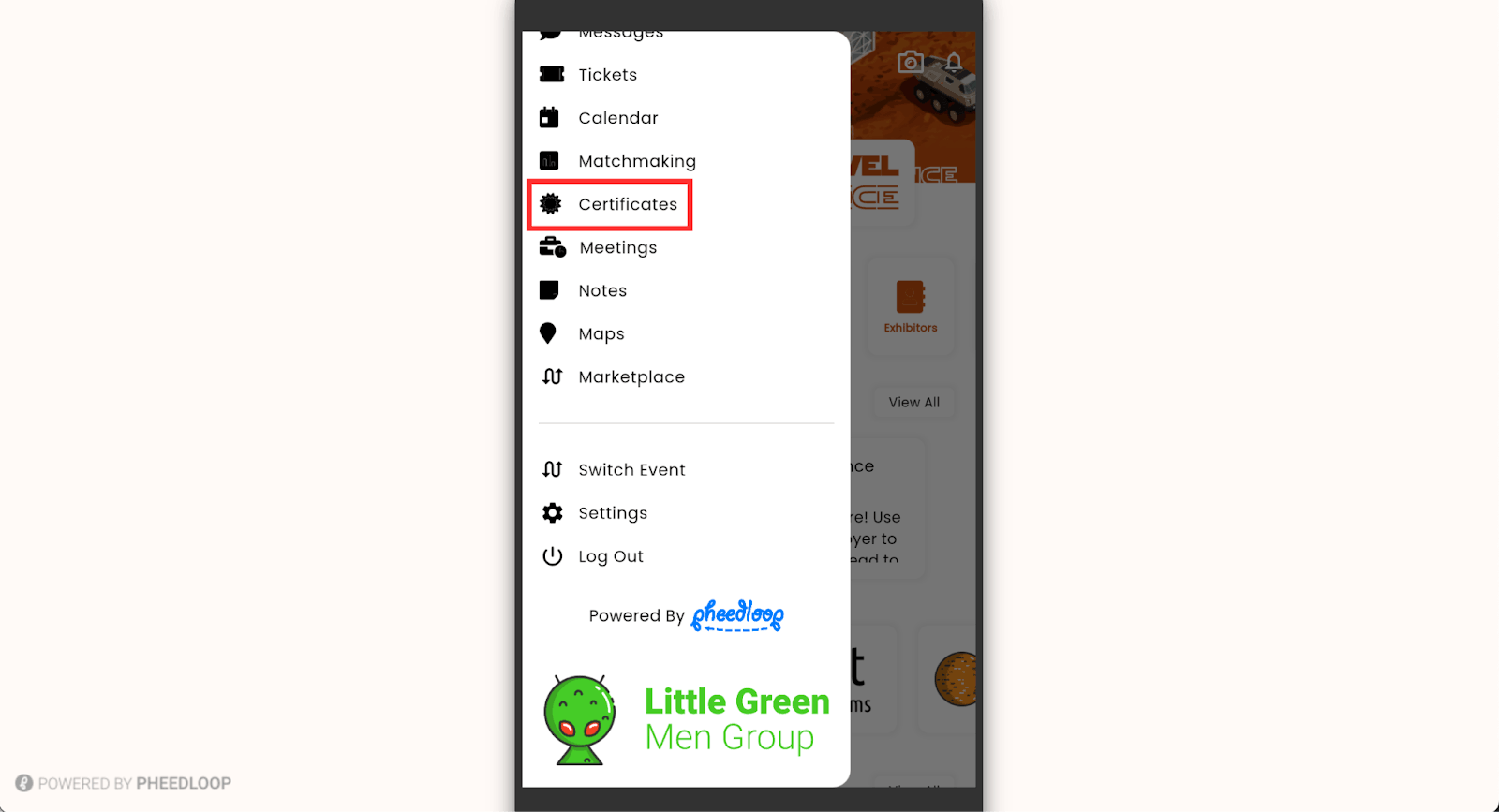 - From the Mobile Event App, navigate to the left-hand side navigation menu,