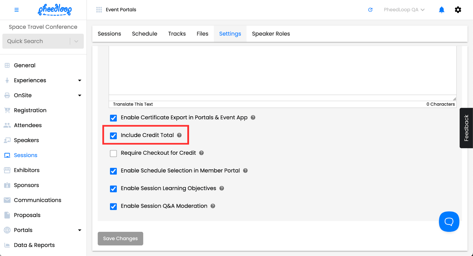 - Toggle on the Include Credit Total checkbox to display a total number of credits earned while attending sessions