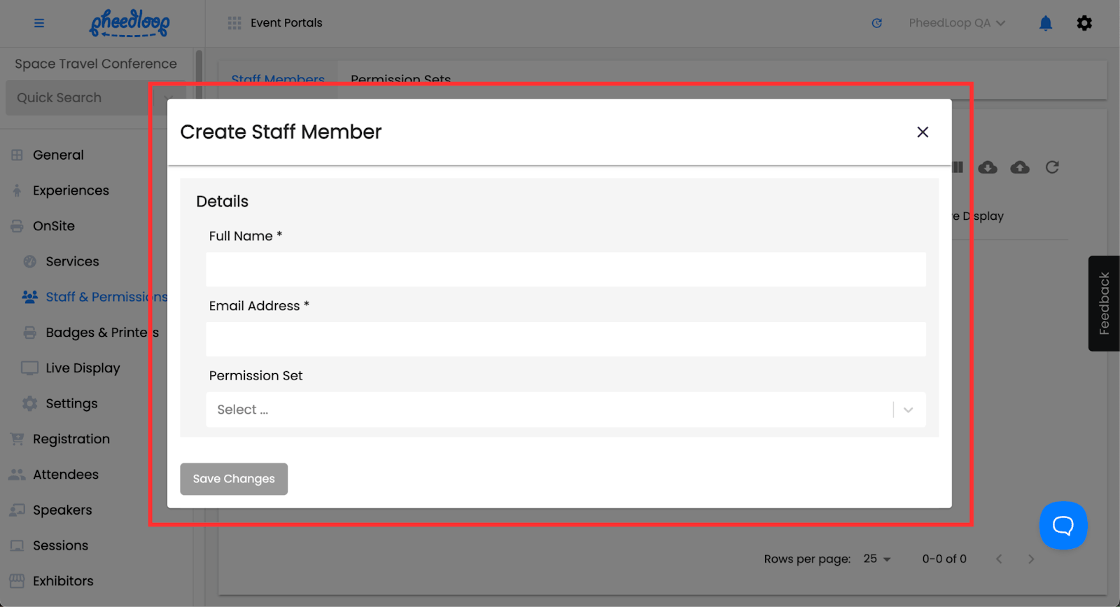 - From the Event Dashboard, navigate to Staff & Permissions > Staff Members