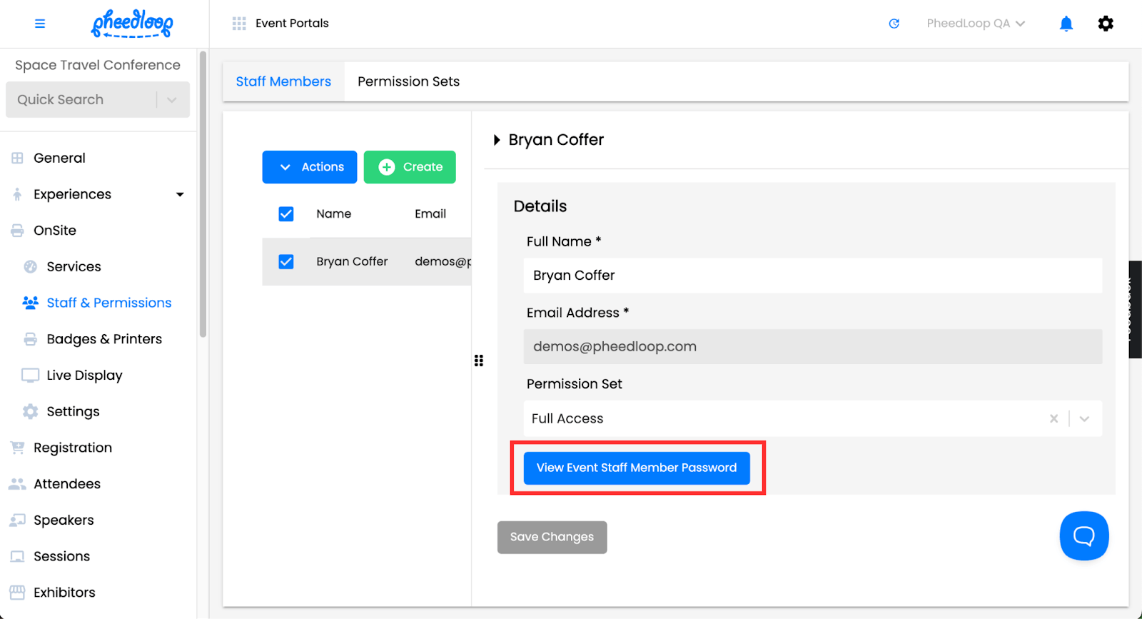 Select View Event Staff Member Password