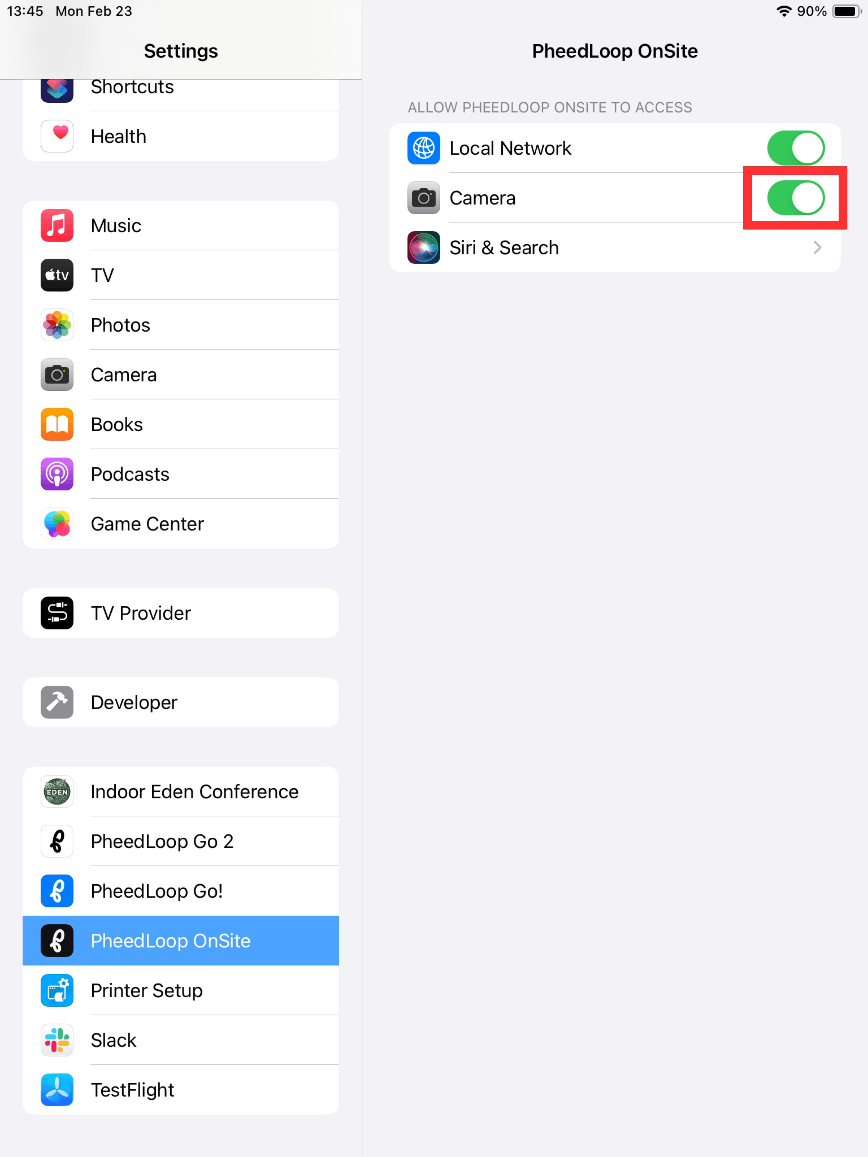 Selecting this option will use the tablet’s camera to scan attendee badges. Please note this feature requires camera permissions to be enabled with PheedLoop OnSite. If this is not permitted, you can enable this by doing the following: