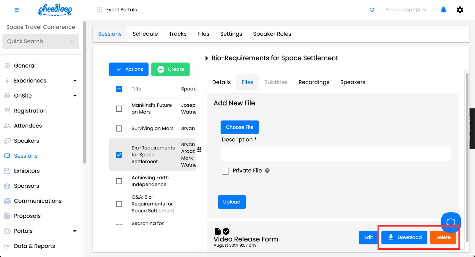 Once enabled, the session files can be viewed in the Event Website.