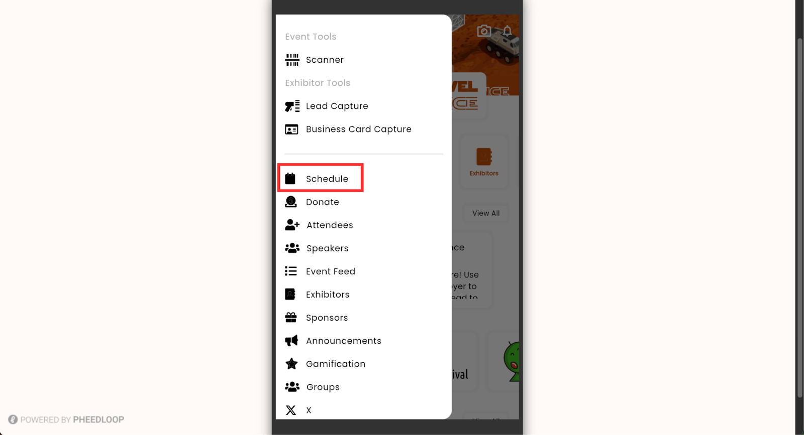 From PheedLoop Go!, select the hamburger menu on the top left corner