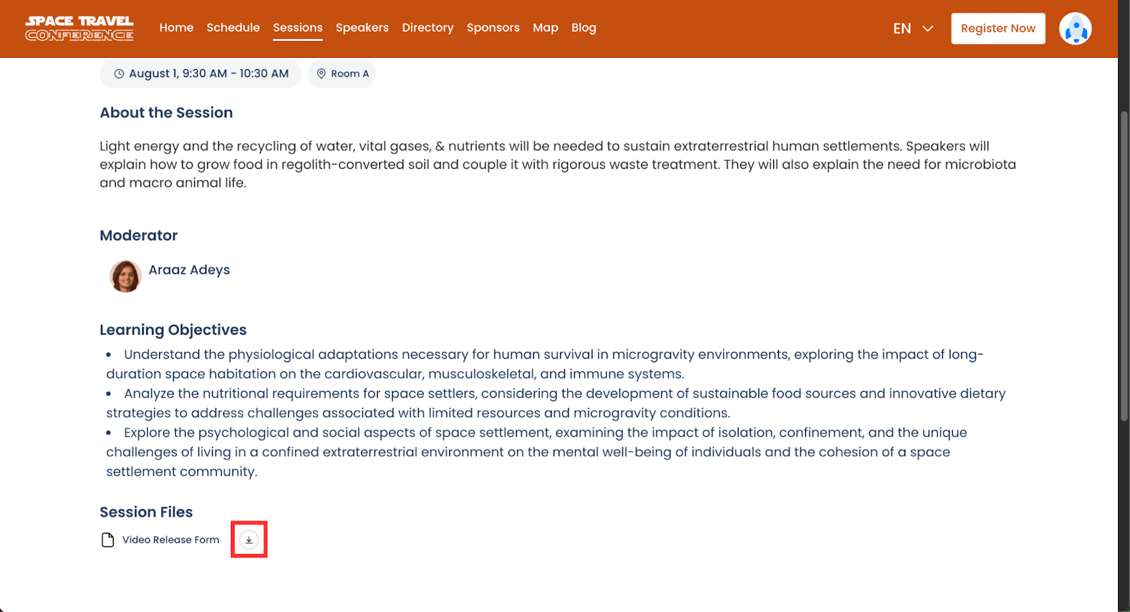 - From the Speaker Portal, navigate to the Sessions page