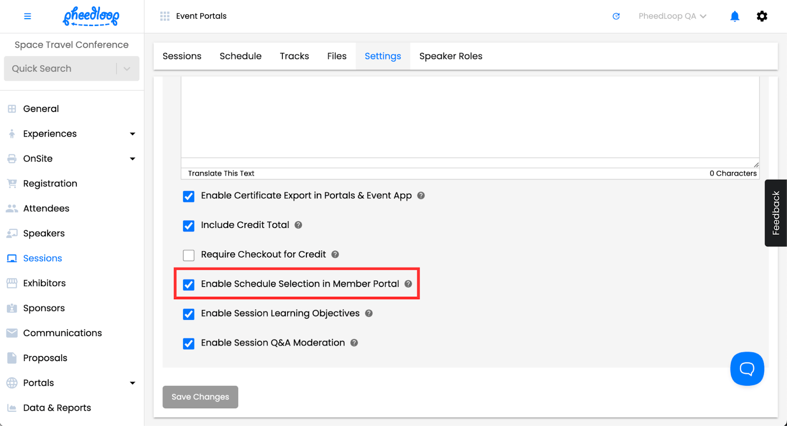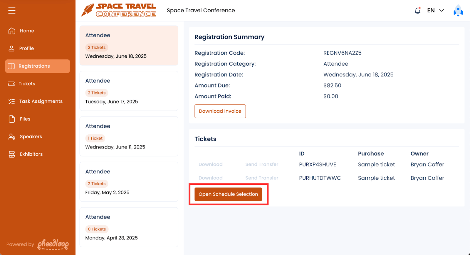 Schedule selection in PheedLoop is synced across all portals. Whenever you add or remove a session to your schedule, you are able to use any portal to do so.