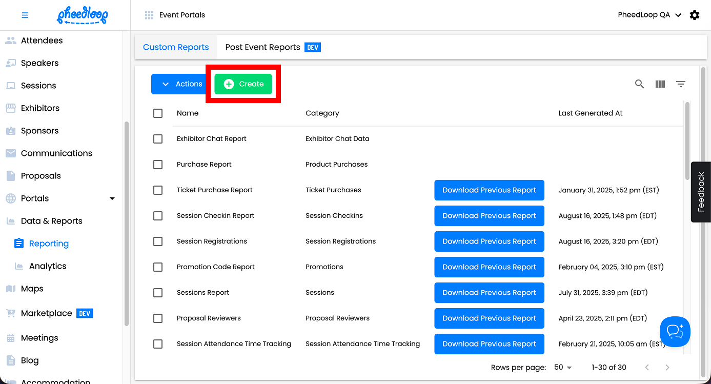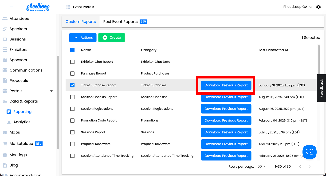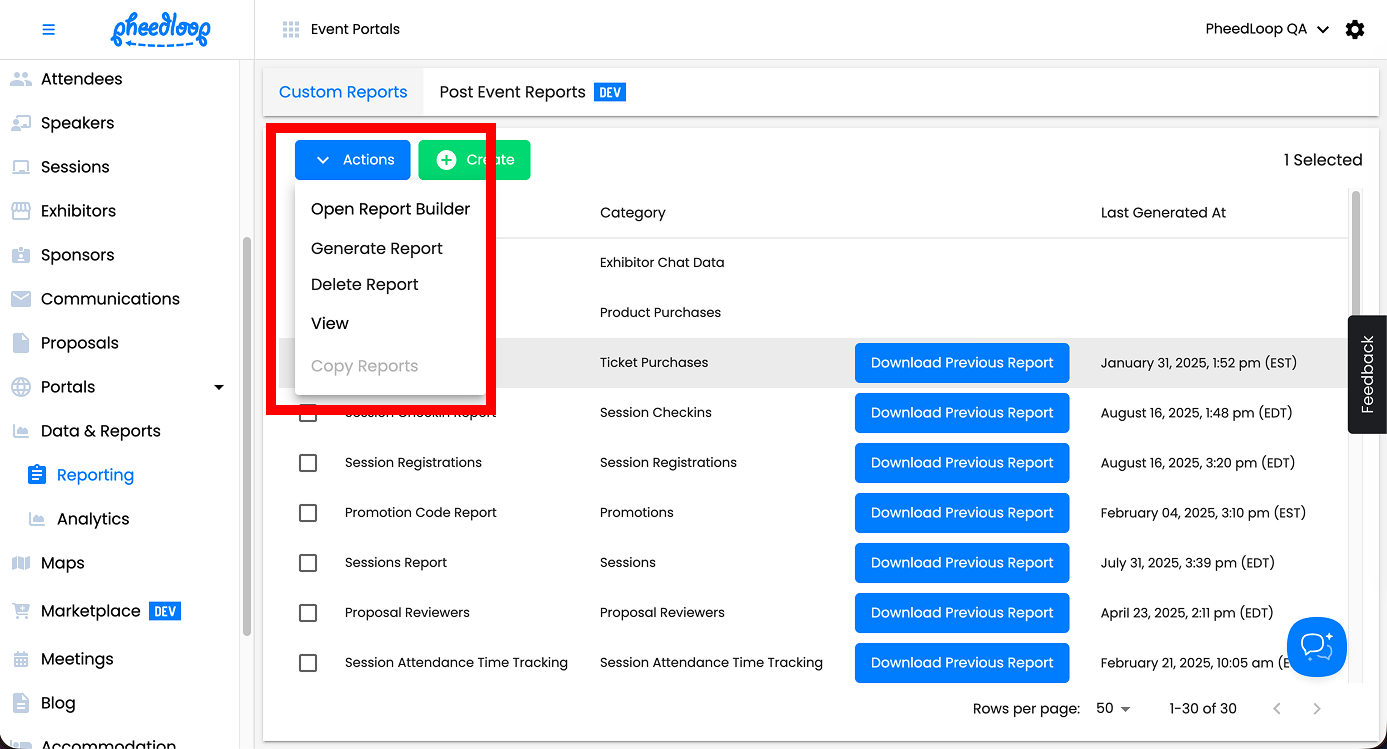 For any event planner, data and reporting is an important element when reconciling or analyzing their event. Thankfully in PheedLoop, we have a powerful, flexible reporting system that allows you to generate reports on virtually any dataset - in real time! Our Custom Reports feature is an improvement to our previous default reports where you can now choose the individual fields you want to be shown in each data report. With any event, pre-built reports are already included in the dashboard such as the Registration Data Report or the Ticket Purchase Data Report.