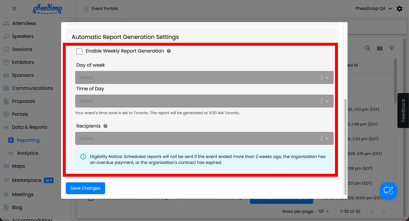 - If you would like to receive weekly reports for this custom report, toggle on the Enable Weekly Report Generation checkbox