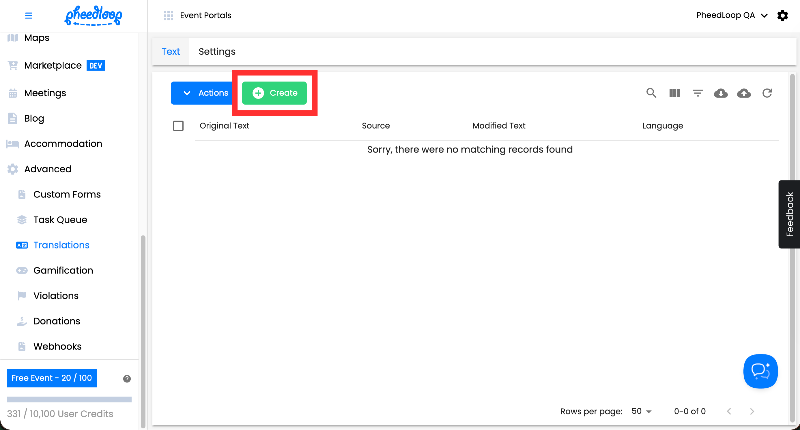 - From the Event Dashboard, navigate to Advanced > Translations > Text