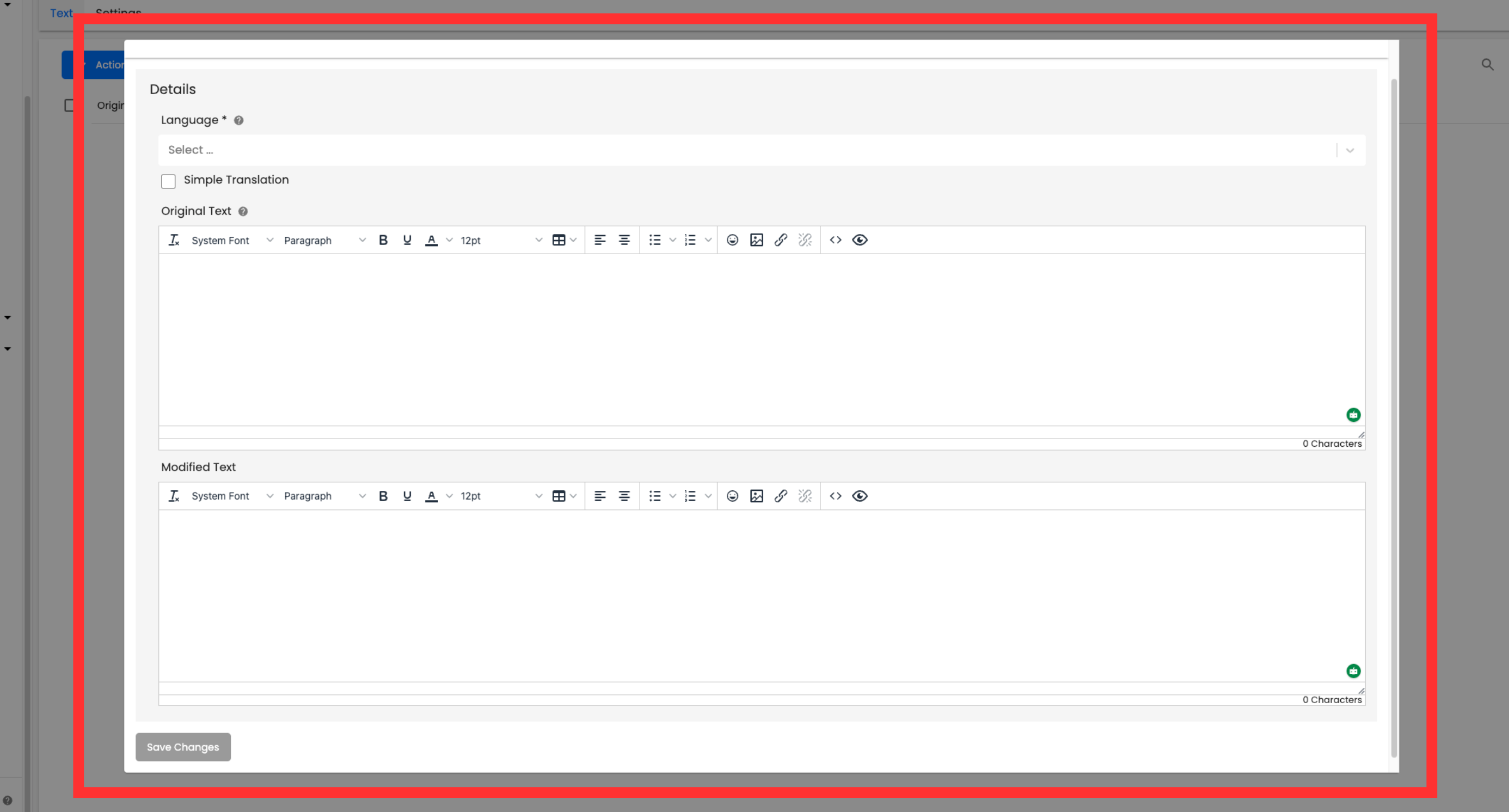 - The Use Object Source checkbox will take the source text which leaves you to enter the Modified Text only.