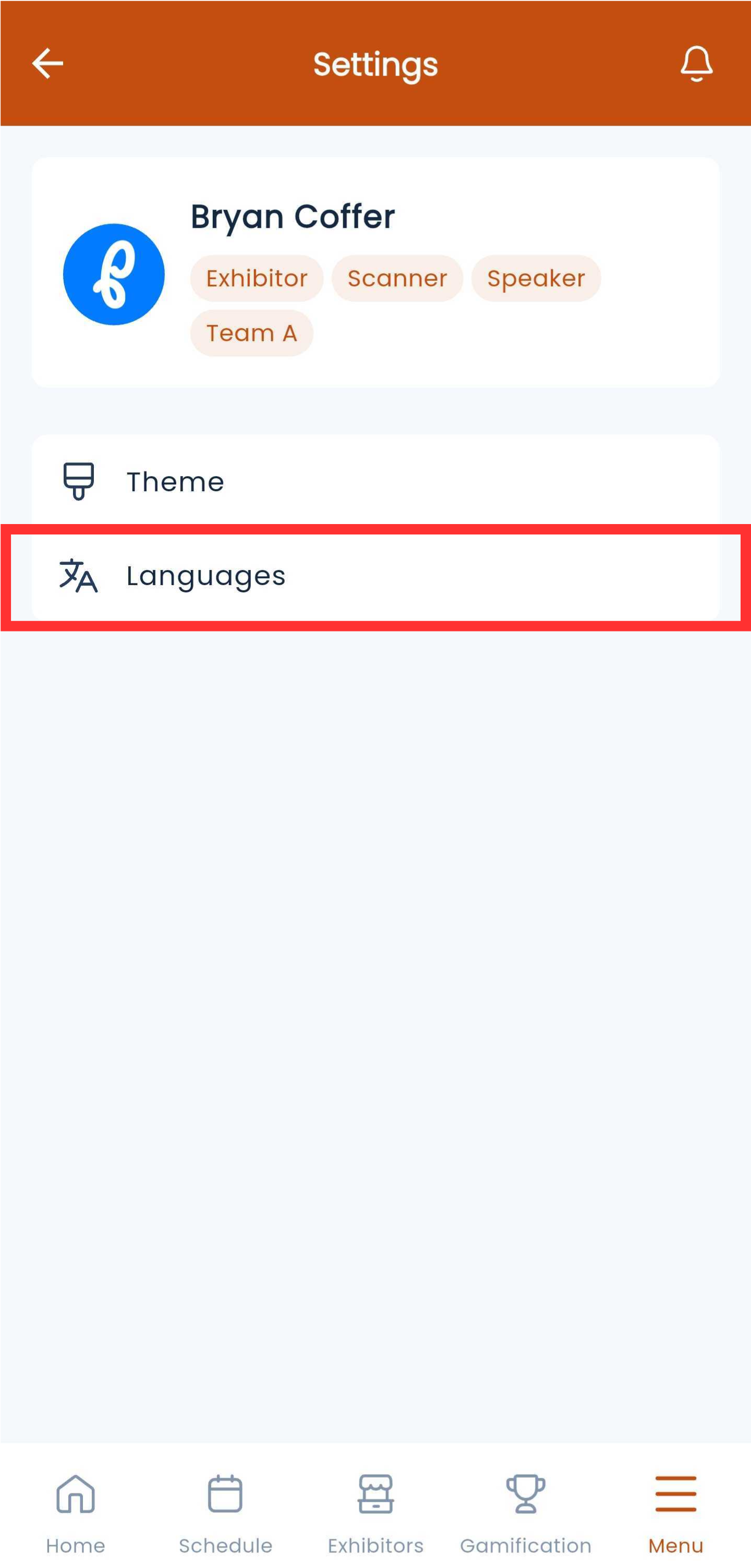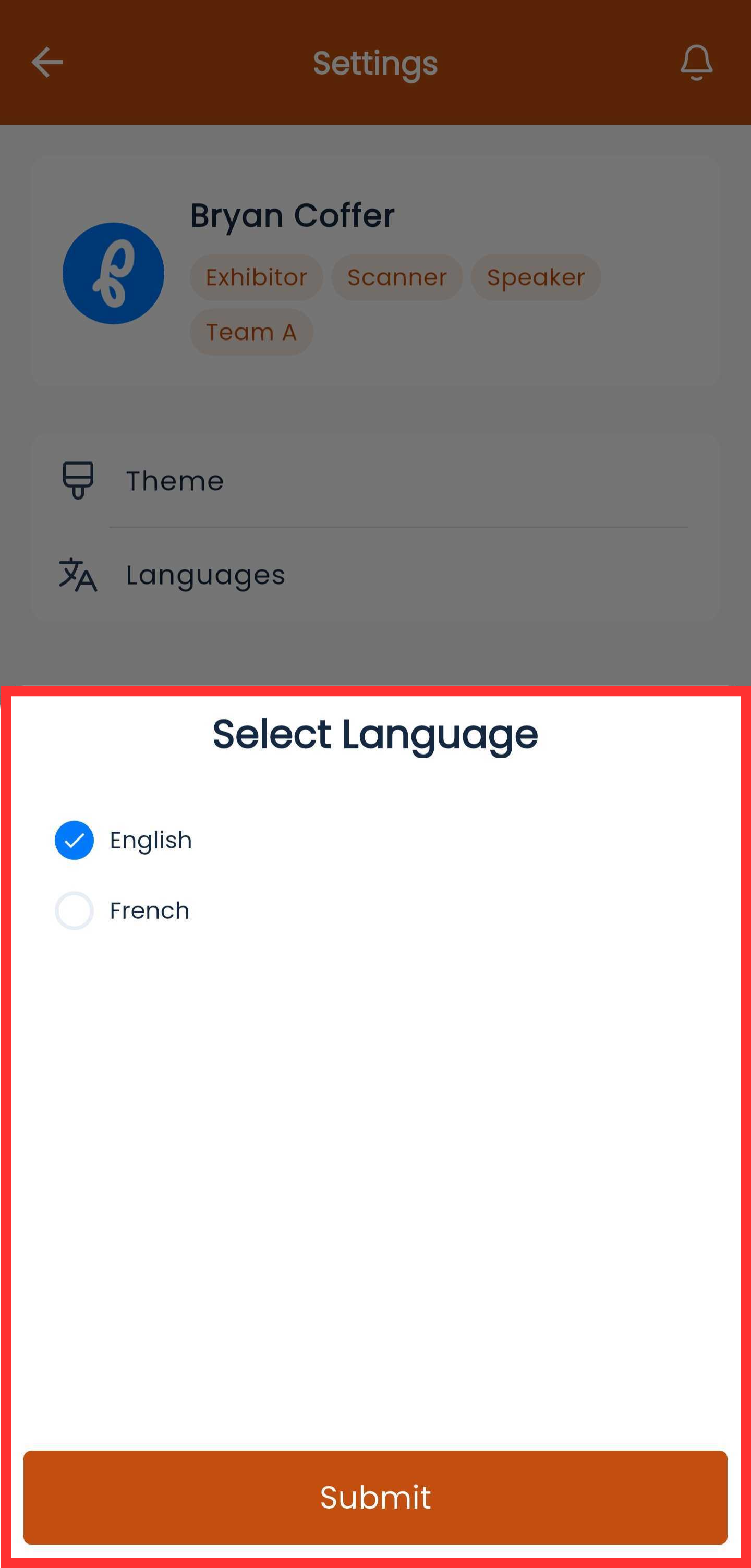 Once done, the language will now appear as an option in the Virtual Portal and Event App