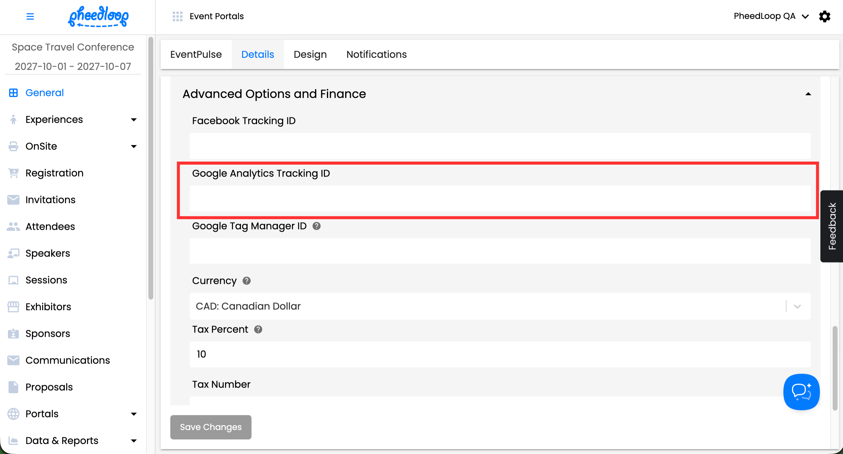 - From the PheedLoop Home Page, navigate to General > Details