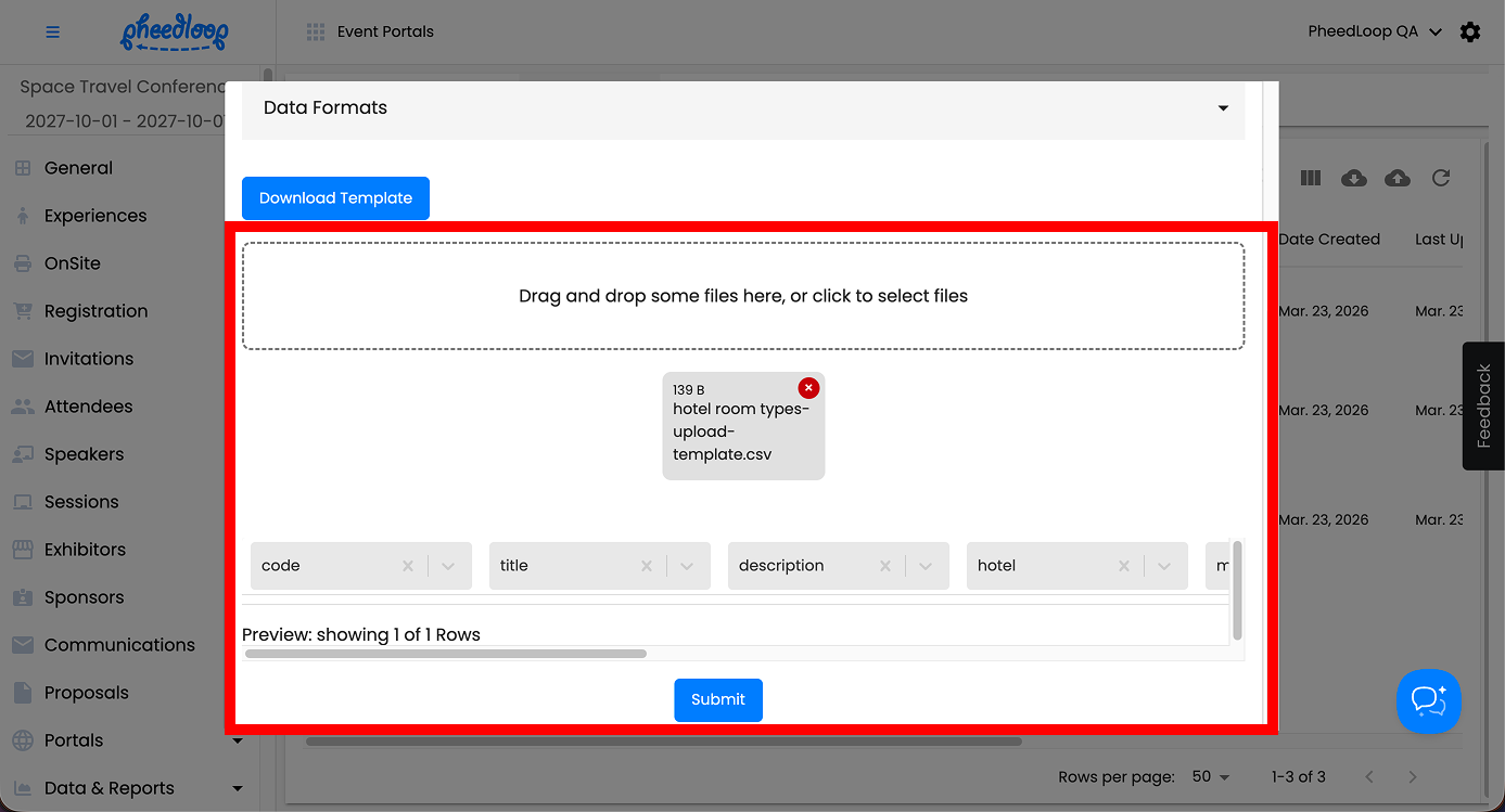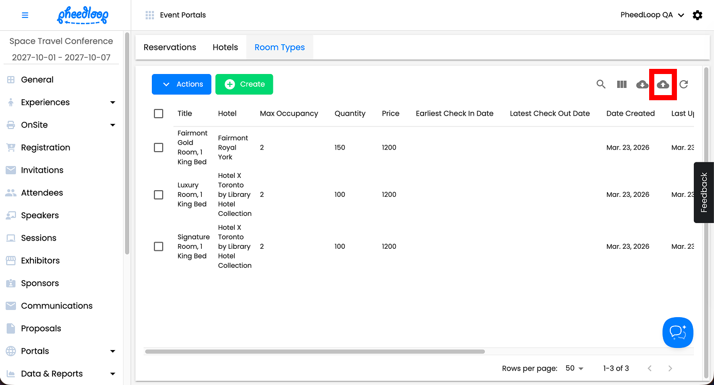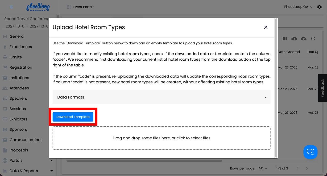 Multiple Room Types can be uploaded simultaneously into the Event Dashboard.