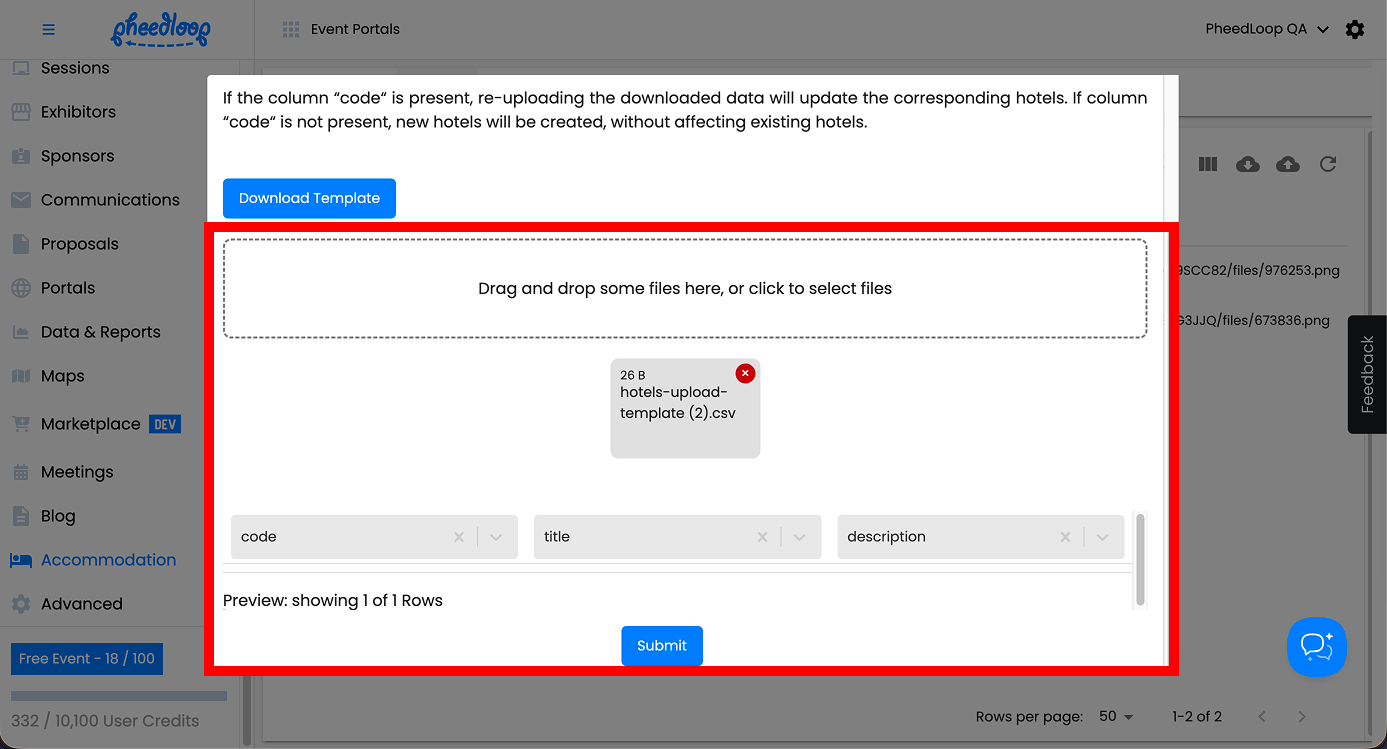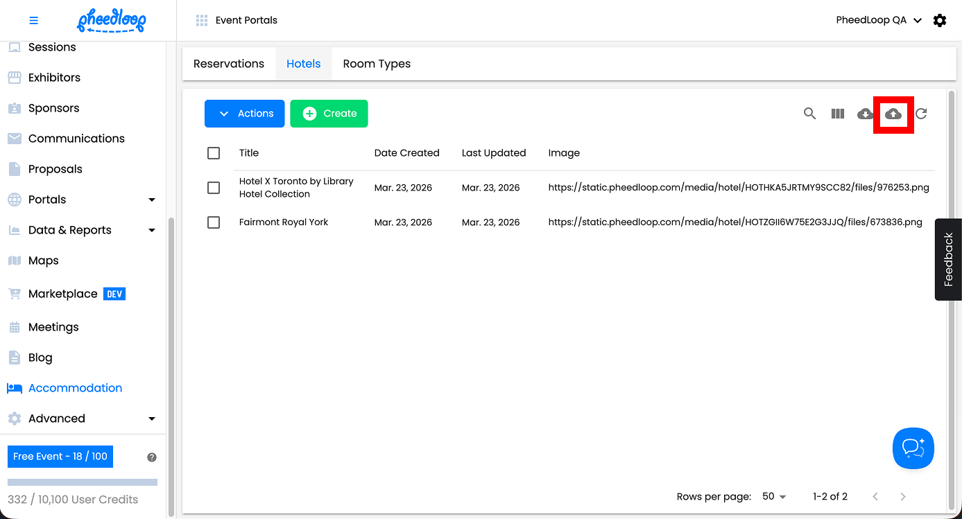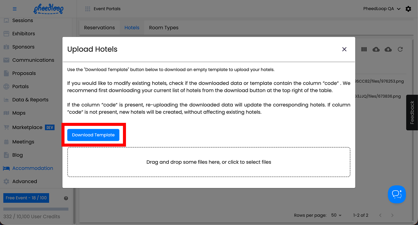 Multiple Hotels can be uploaded simultaneously into the Event Dashboard.