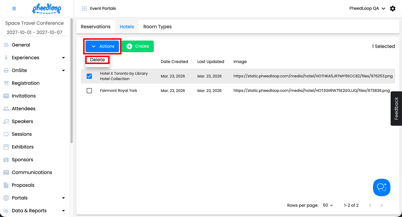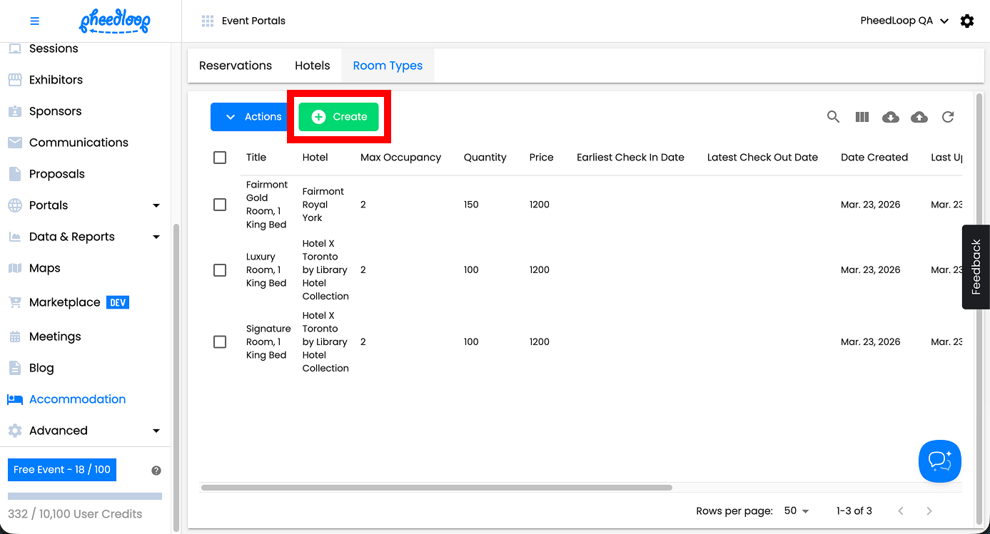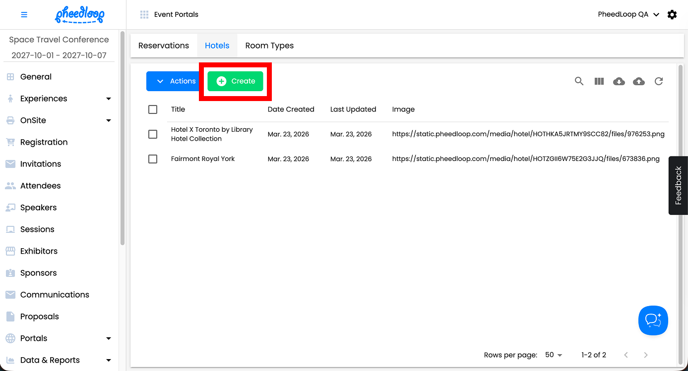 PheedLoop’s Housing Management feature is designed to help event administrators collect and evaluate attendees interest in specific hotels or room types. While it’s possible to manually create reservations for attendees in the dashboard, this feature is not intended to manage confirmed bookings or room assignments. Instead, it serves as a tool to gauge demand and coordinate potential housing needs for your event.