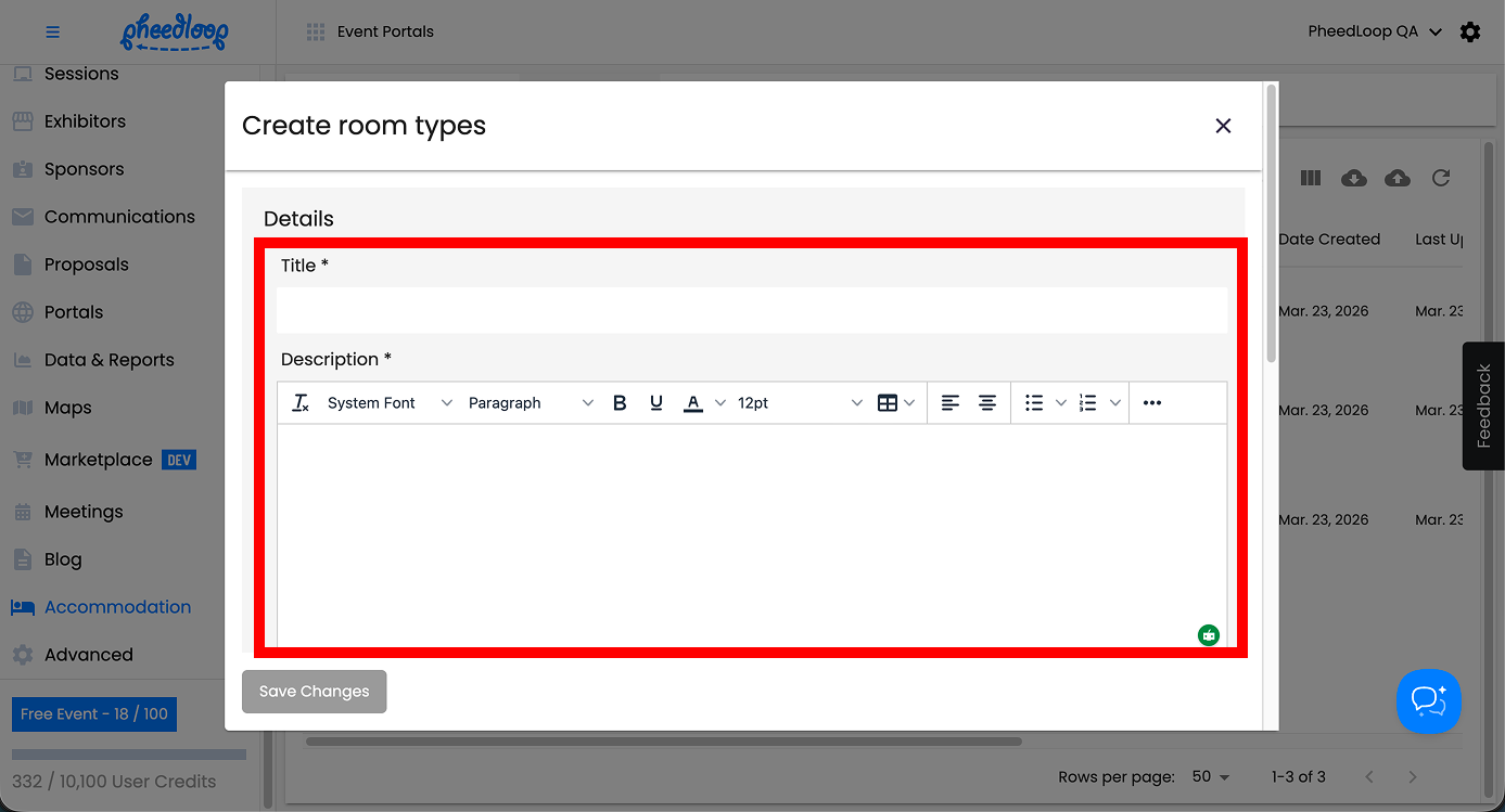 - From the Event Dashboard, navigate to Accommodation > Room Types