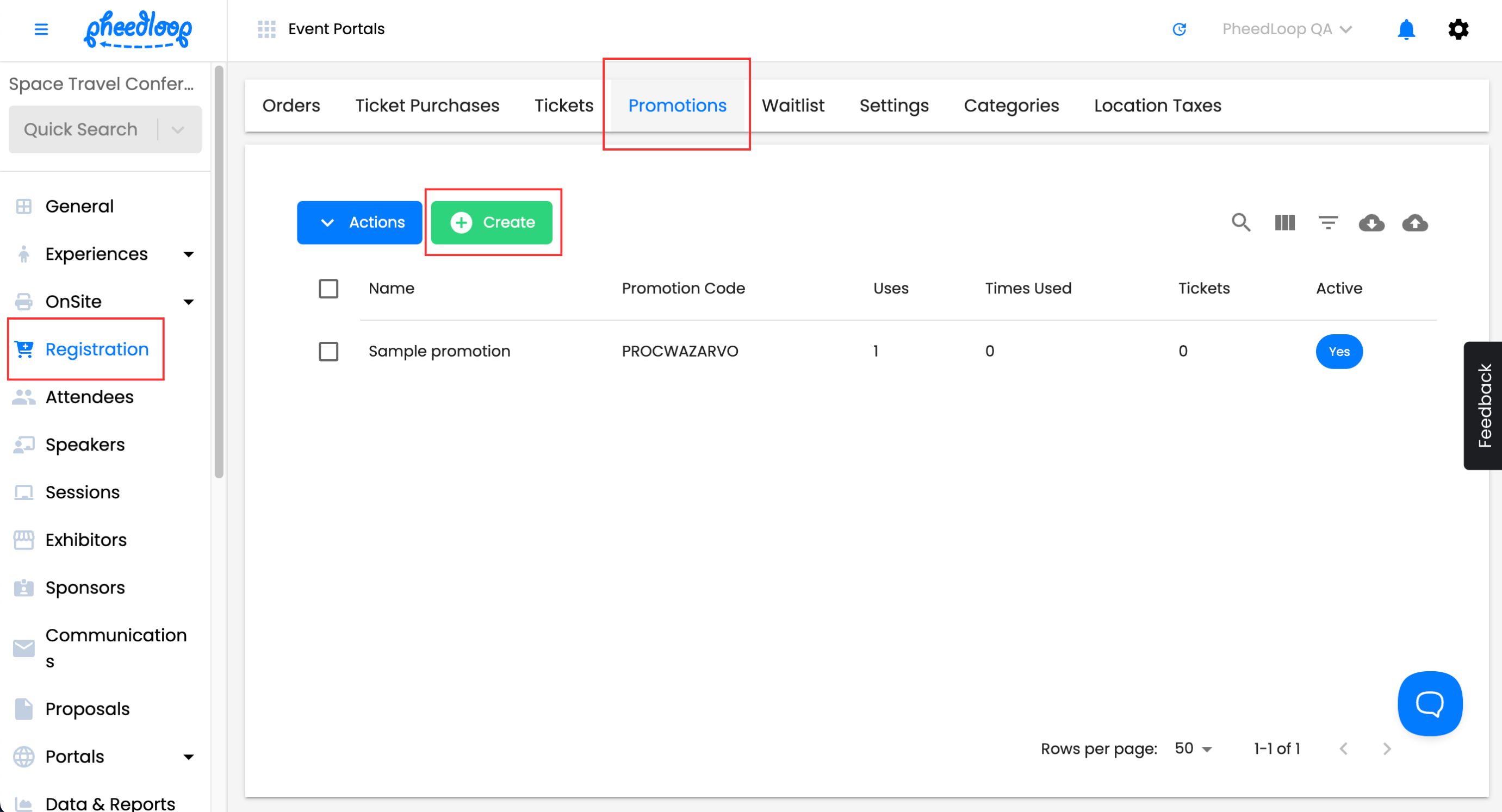 From the Event Dashboard, navigate to Registration > Promotions and above the promotions table, select Create