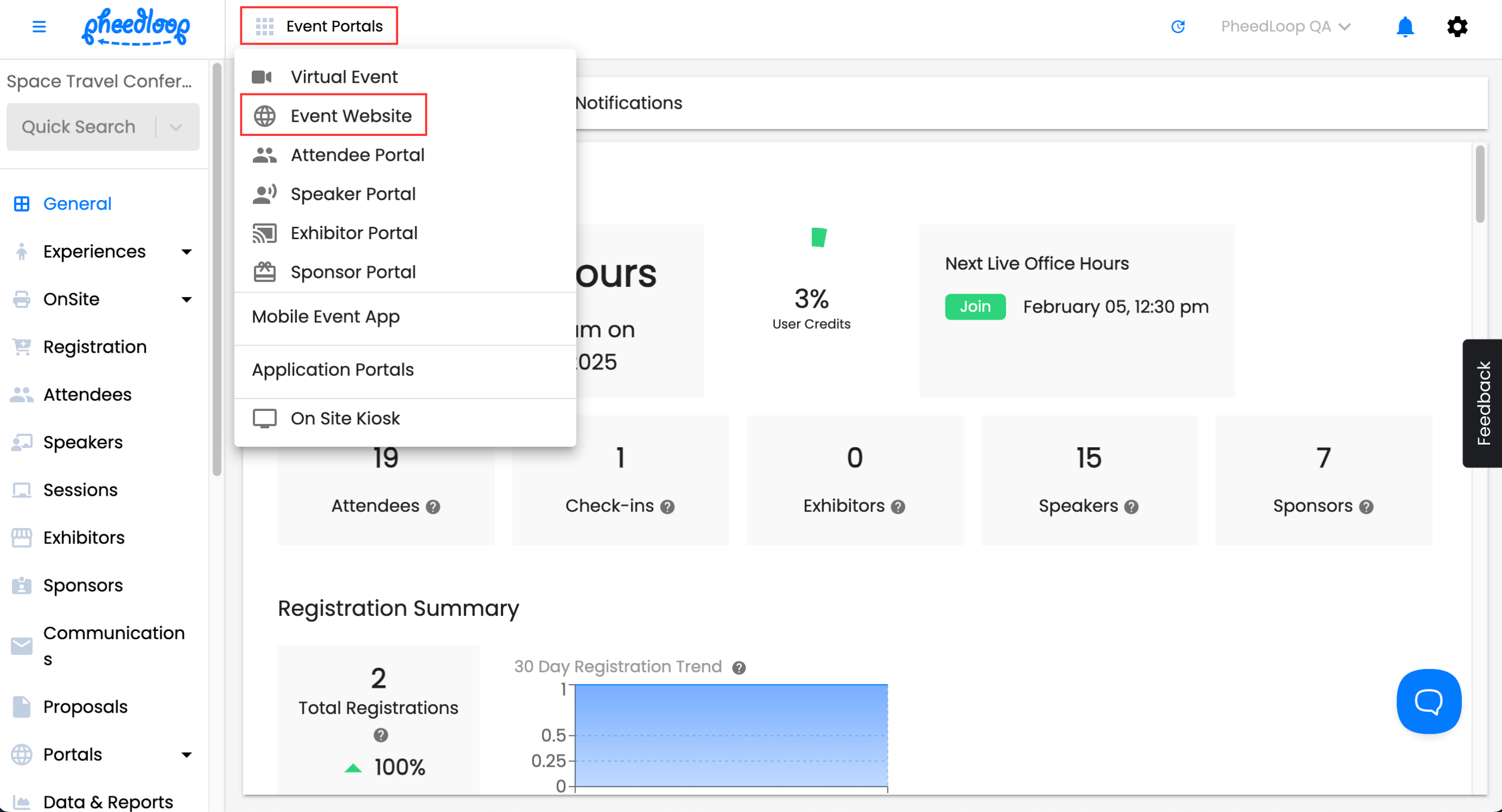 From the Event Dashboard, navigate to Event Portals > Event Website