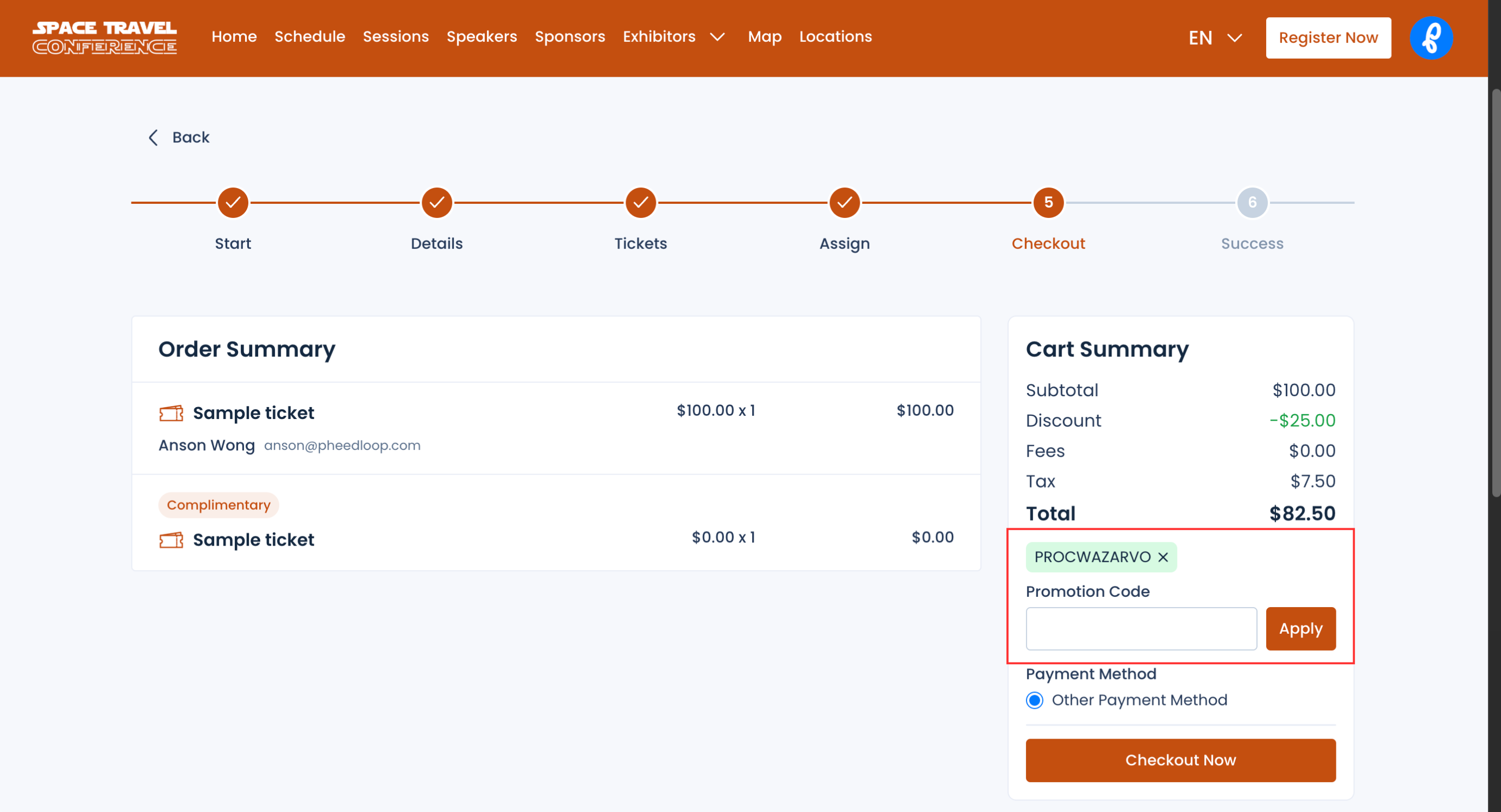 After you create your promo code, it’s recommended that you test it out by going through your own registration process!