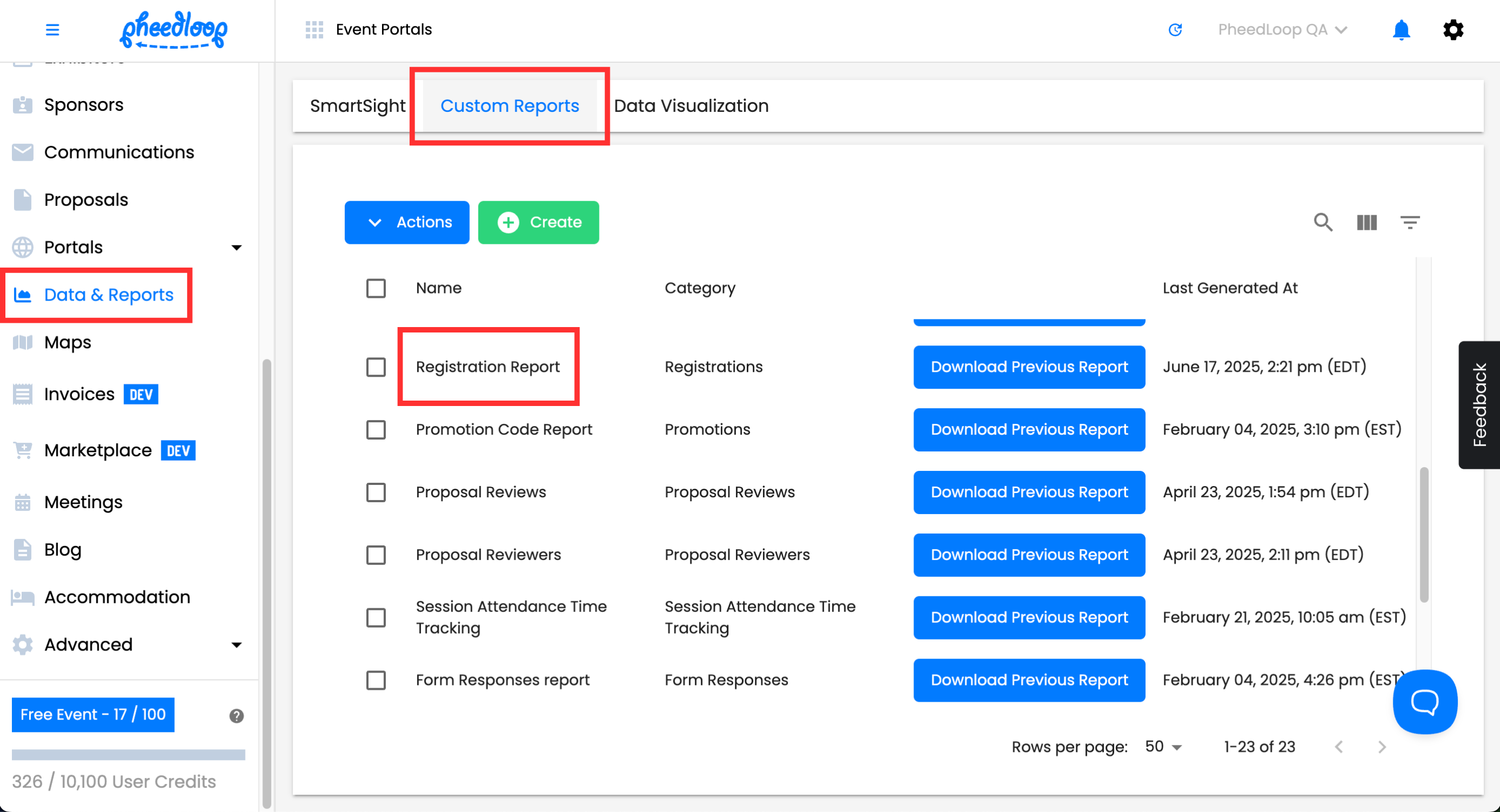 - From the Event Dashboard, navigate to Data & Reports > Custom Reports